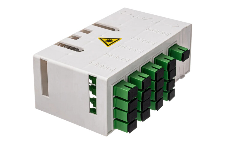 Предназначен для применения в пассивных оптических сетях (PON) в качестве корпуса для размещения оптических сплиттеров. Используется в муфтах-кроссах МКО-П3 СМ5 выполнен из качественной пластмассы белого цвета и представляет собой пластиковый корпус с местами для установки разветвителей и органайзерами для укладки волокон. На лицевой стороне модуля расположены гнёзда для установки до 20 адаптеров типа SC . Конструкция модуля позволяет установить PLC разветвители, оконцованные разъёмами SC типа: два 1х8 или один 1х16. При этом как входные, так и выходные разъёмы разветвителей будут подключены к адаптерам модуля.