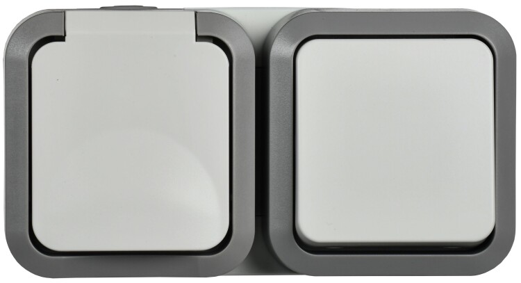 TORS Блок розетка + выключатель горизонтальный 16А IP55 TS242 серо-белый IEK