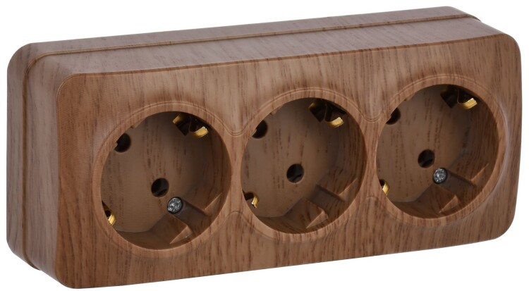 GLORY Розетка 3-местная для открытой установки с заземлением без защитных шторок 16А РС23-3-ХД дуб I
