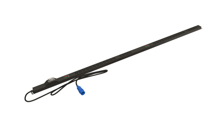 Hyperline SHE-24IEC-6BIEC-BAV-3PVB Блок розеток, вертикальный, 24 розетки IEC320 C13, 6 розеток IEC320 C19, авт.выкл., амперметр/вольтметр,кабель питания 3м (3х4.0мм2) с вилкой IEC 60309 32А (2P+E) 250В, 1555х44,4х44,4 мм (ДхШхВ), корпус алюминий, черный
