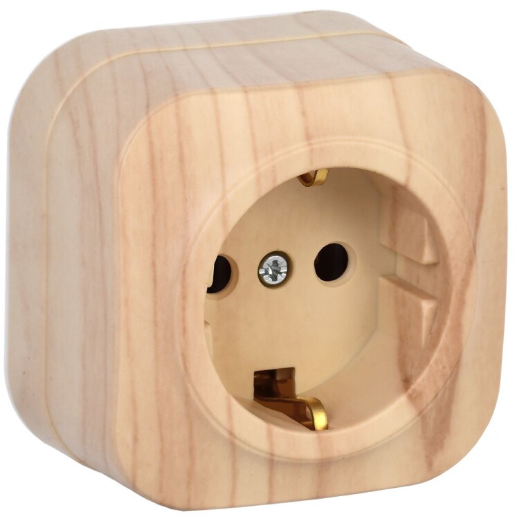 GLORY Розетка 1-местная для открытой установки с заземлением без защитных шторок 16А РС20-3-ХС сосна