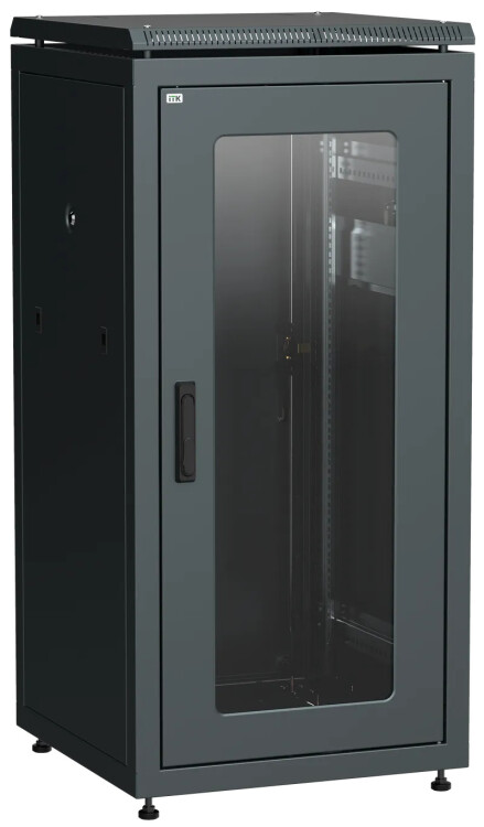 Шкаф напольный 19", 18U, 600х800мм, стекл. перед. дверь, задн. металл., черный, LINEA N, ITK LN05-18U68-GM