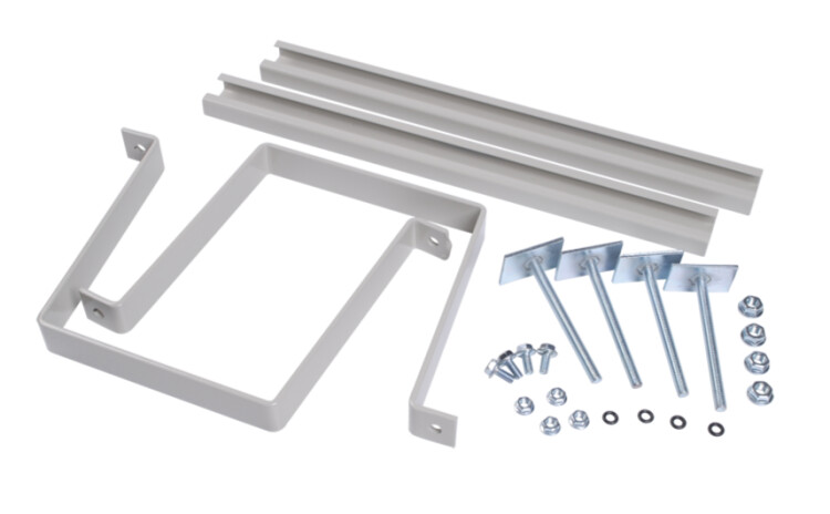 Комплект предназначен для монтажа металлических корпусов: - на железобетонных стойках типа СВ110 и СВ105 – крепление скобами; - на столбах круглого сечения диаметром до 350 мм – крепление монтажными полосами. Наибольшая масса закрепляемого электрощита – 80 кг.