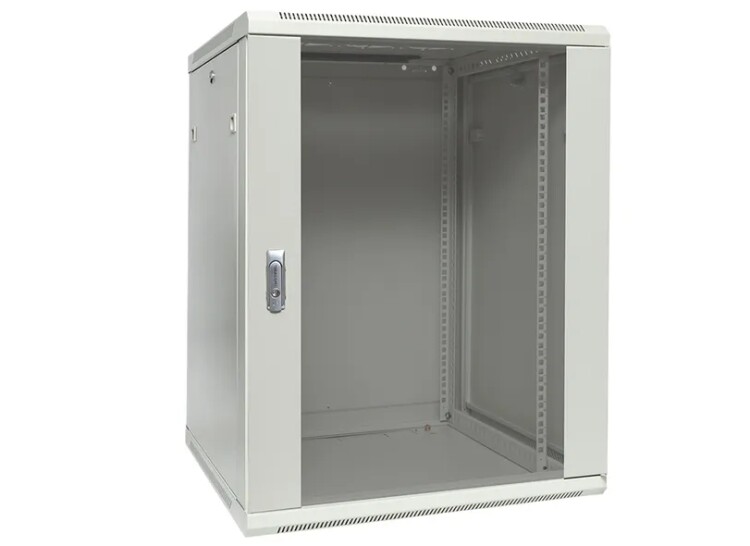 Шкаф настенный 19", 15U, 600х600мм, стекл. дверь, серый, TERACOM PRO TRP-WLL-1566-40G