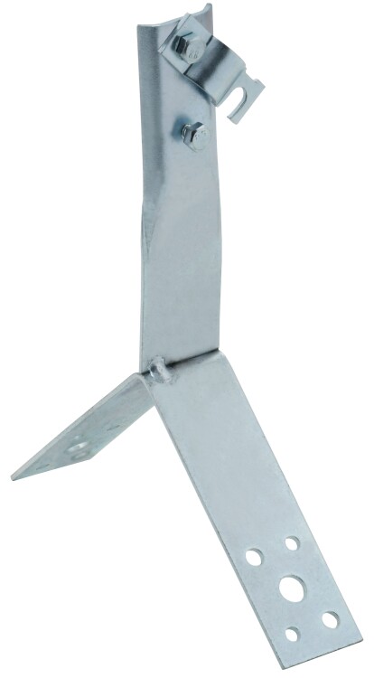 Держатель проводника круглого для конька с болтовым зажимом предназначен для закрепления прутка на коньке скатной кровли. Держатель крепится к кровле при помощи метизов. Зажим проводника происходит при помощи болтового соединения. Материал корпуса - сталь горячеоцинкованная.
