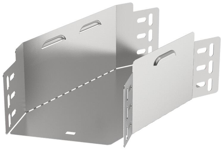 Поворот горизонтальный на 45° предназначен для организации поворота кабельной трассы в горизонтальной плоскости. Аксессуар поставляется в плоском виде, имеет направляющую перфорацию для сгиба и сборки изделия перед установкой. Стыковка аксессуара с лотком осуществляется за счёт телескопического соединителя. Подходит для всех типов листовых лотков серии ESCA. Крышка на аксессуар заказывается отдельно. Аксессуар изготовлен из стали оцинкованной методом Сендзимира (защитный слой цинка не менее 5-10 мкм).