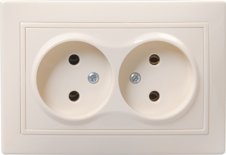 Розетка силовая РСш12-3-ККм, 2местн, с з/к с защ.штор., 16А, кремовый, IEK ERK21-K33-16-DM