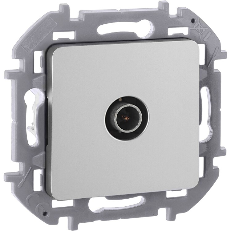 Розетка телевизионная для скрытого монтажа Inspiria, для схемы "звезда", затухание 1дБ, 4-2400МГц, поддержка обратного питания для активных антенн до 500мА, цвет "Алюминий". Предназначена для подключения одного ТВ приемника к антенне, а также для организации телевизионной сети по схеме "звезда", когда к каждому телевизору прокладывается своя линия от источника сигнала.