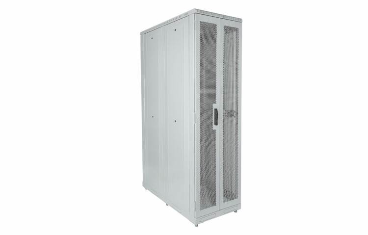 Предназначен для размещения активного и пассивного серверного оборудования. Изделие выполнено в системе несущих конструкций серии 482.6 мм (19”). Климатическое исполнение УХЛ4 (предназначено для эксплуатации в закрытых помещениях). Имеет полностью разборную конструкцию и состоит из основания, крыши и трех сварных рам, соединенных комплектом швеллеров. Поставляется в трех транспортных местах. За счет элементов крепления каркас шкафа имеет повышенную жесткость. Распределенная вертикальная нагрузка до 1000 кг. Стандартно шкаф комплектуется: передней и задней дверями, боковыми стенками с замками. Предусмотрены кабельные вводы в верхней и нижней частях шкафа. В основание или крышу шкафа возможна установка вентиляторных модулей. Вертикальные направляющие регулируются по глубине. Система заземления шкафа входит в стандартную комплектацию. В основание шкафа предусмотрена установка шести винтовых опор (ножек), позволяющих компенсировать неровности пола, также возможна установка на ролики.