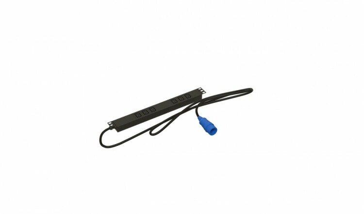 Hyperline SHE19-6IEC-2.5PVB Блок розеток для 19" шкафов, горизонтальный, 6 розеток IEC320 C13, кабель питания 2.5м (3х4.0мм2) с вилкой IEC 60309 32А (2P+E), 250В, 482.6x44.4x44.4мм (ШхГхВ), корпус алюминий, черный