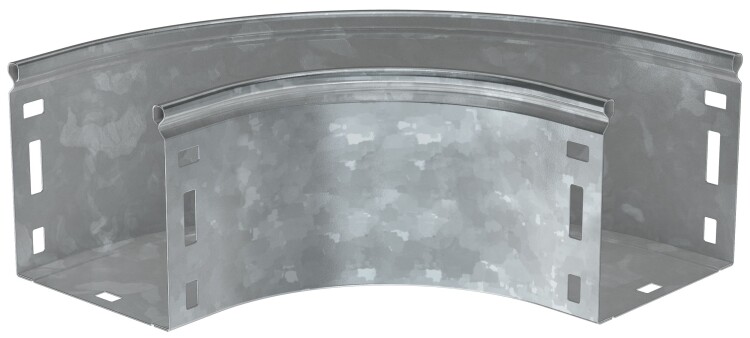 Поворот на 90° плавный предназначен для организации горизонтального поворота кабельной трассы на 90°. Крышка аксессуара в комплект не входит. Аксессуар изготовлен из стали с цинковым покрытием, нанесенным погружением изделий в расплав цинка (защитный слой цинка не менее 55 мкм).