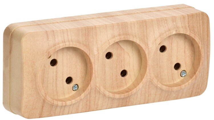 GLORY Розетка 3-местная для открытой установки без заземления без защитных шторок 10А РС23-2-ХС сосн