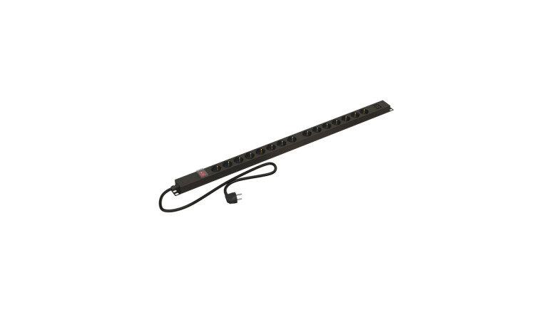 Hyperline SHE-15SH-1IEC-SF-2.5EU Блок розеток, вертикальный, 15 розеток Schuko, 1 розетка IEC320 C13, 16A, выключ.с подсветкой, защита от перенапр., кабель питания 2.5м (3х1.5мм2) с вилкой Schuko 16A, 250В, 990x44.4x44.4мм (ДхШхВ), корпус алюминий, черный