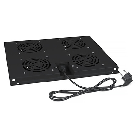 Модуль вентиляторный потолочный предназначен для охлаждения внутренней части телекоммуникационного шкафа путем отвода тепла наружу. Модель предназначена для установки в напольный телекоммуникационный шкаф Cabeus глубиной 600мм. Вентиляторный модуль состоит из металлического конструктива с закрепленными на нем 4-мя вентиляторами. Питание модуля осуществляется подключением его к сети напряжением 220В с помощью шнура питания IEC 320 C13/Schuko длиной 1,5 м. Покрытие вентиляторного модуля – порошковая краска черная (RAL9004). Установка модуля производится путем крепления с внутренней стороны шкафа к верхней его части.