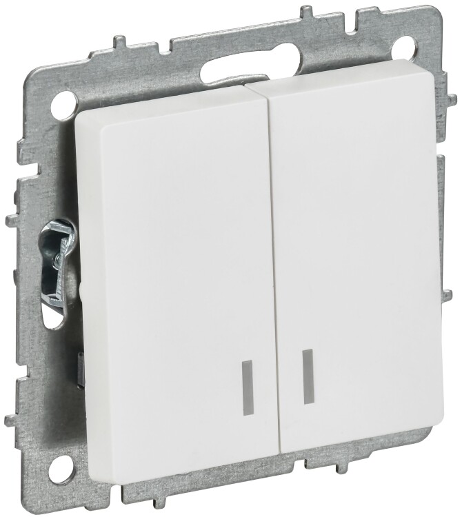 BRITE Выключатель 2-клавишный с индикацией 10А ВС10-2-1-БрАБ арктический белый IEK