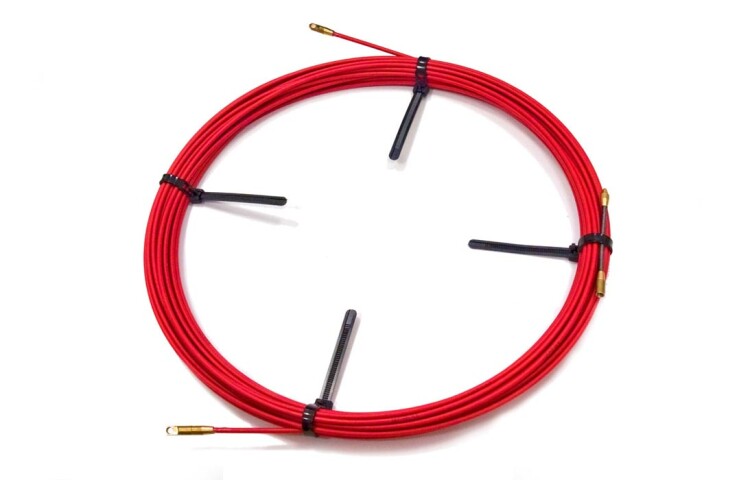 Предназначено для протяжки кабеля различного назначения в гофротрубах, металлоруковах, закрытых коробах и других видах кабельных каналов зданий. Представляет собой стеклопластиковый пруток с защитным покрытием из полиэтилена высокой плотности. Один конец прутка оконцован латунным наконечником с резьбой, на котором размещается коуш или сменная лидер-насадка. Второй конец имеет несъемный наконечник в виде коуша. Пруток в бухте стягивается многоразовыми пластиковыми хомутами. При вводе в канал пруток стремится распрямиться и легко проталкивается вручную, в том числе через повороты, подъёмы и спуски кабельной трассы. Достоинствами мини УЗК в бухте являются небольшие габариты и малый вес, что делает их удобными для работы даже в стеснённых помещениях, на чердаках и в подвалах.
