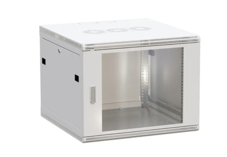Шкаф настенный 19", 9U, 600х600мм, стекл. дверь, серый, TERACOM PRO TRP-WLL-0966-40G