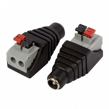 РАЗЪЁМ питания гнездо 2.1х5.5 с быстрозажимной колодкой (блистер) REXANT предназначен для оперативного подключения питания различного оборудования (систем видеонаблюдения, питания зарядных или других бытовых устройств) к источнику питания постоянного тока 12/24В (DC). Такое двухконтактное гнездо монтируется на кабель без использования какого-либо инструмента с помощью подпружиненных зажимов и соединяется с штекером питания. Этот способ крепления значительно проще и быстрее, чем пайка, но его надежность и качество соединения остаются на неизменно высоком уровне. Никелевое покрытие контактов повышает долговечность разъема и позволяет применять его в условиях климатических перепадов. Разъем прямой формы имеет размеры 2.1х5.5мм. Корпус изготовлен из ударопрочного пластика. Монтаж возможно осуществлять с разными типами кабелей: ШВВП, комбинированный провод или витая пара. Диапазон рабочих температур от -30℃ до +50℃.
