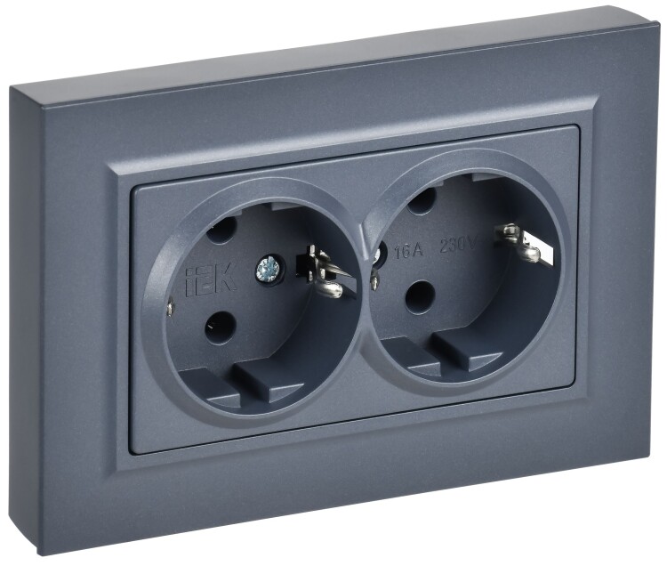 BRITE Розетка 2-местная с заземлением без защитных шторок плоская 16А в сборе РСПл12-3-БрМ маренго I