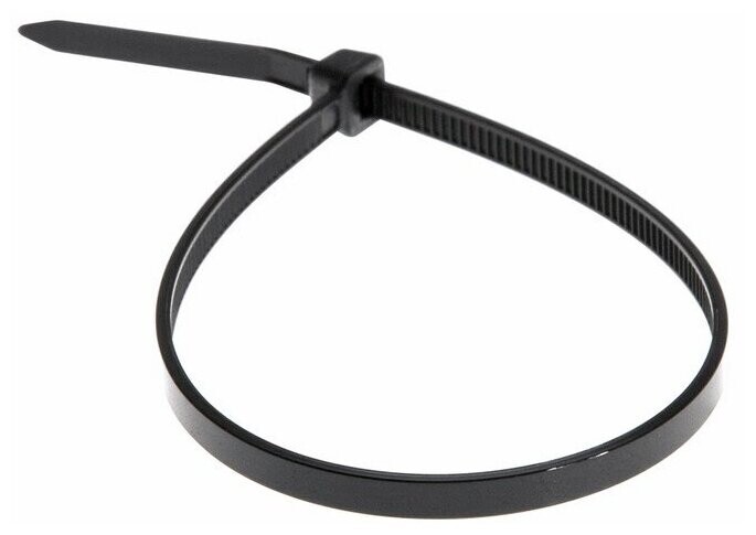 Хомут нейлоновый (кабельная стяжка) 200х4,8 мм чёрный REXANT предназначен для крепления или обвязки в жгут кабелей и проводов, крепления гибких гофротруб, а также других предметов к несущей поверхности или для соединения между собой. Такая стяжка используется при проведении электромонтажных работ, при монтаже структурированных кабельных систем, для бытовых нужд, а также в других отраслях народного хозяйства. Представляет собой гибкую полоску из нейлона высокой прочности (полиамид-6,6) с замком на конце. Полиамид-6,6 — кристаллизующийся конструкционный материал, имеющий высокую твердость и механическую прочность, отличающийся высокими электроизоляционными свойствами. Простой и удобный монтаж осуществляется вручную следующим образом: большим пальцем левой руки прижать замок к пучку, а правой рукой затягивайте петлю, либо с помощью специального инструмента REXANT арт.12-4521 или 12-4541 (вставить конец затяжки в замок и затянуть до полной фиксации пучка, после чего отрезать выступающую часть бандажа).