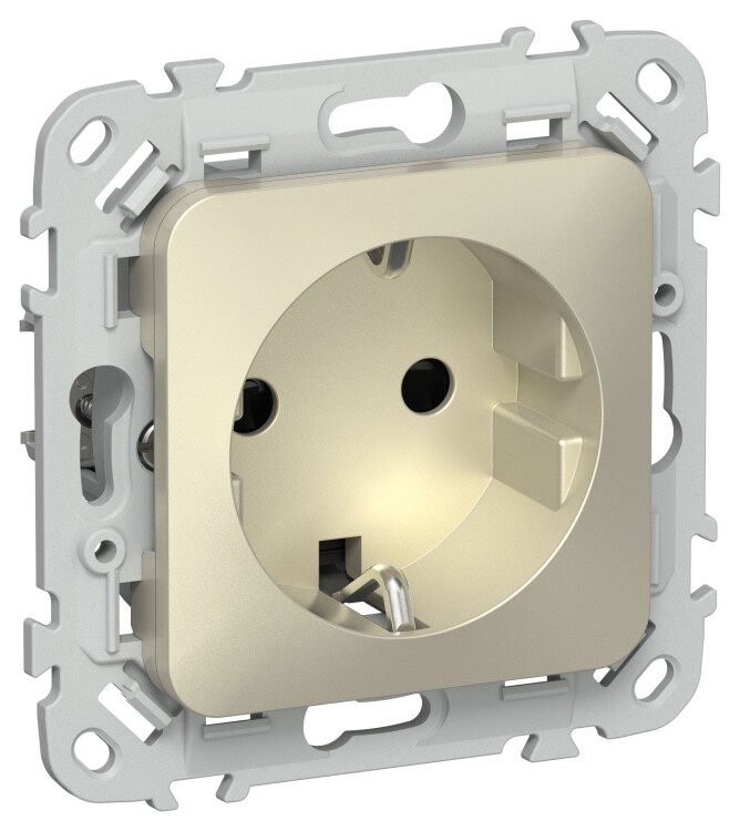 FLITE Розетка с заземлением с защитными шторками 16А РСш11-0-ФлШ шампань IEK