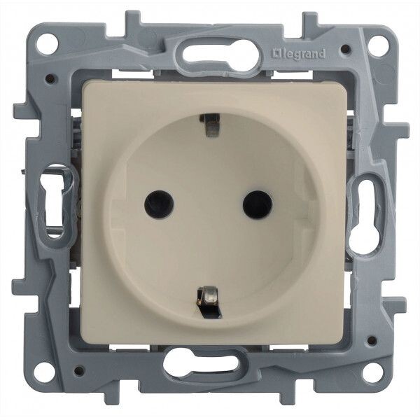 ETIKA Розетка 1-местная с заземлением с защитными шторками 16А 250В слоновая кость