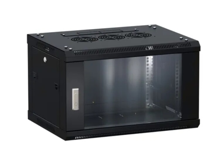 Шкаф настенный 19", 9U, 600х450мм, стекл. дверь, черный, TERACOM PRO TRP-WLL-0964-40B