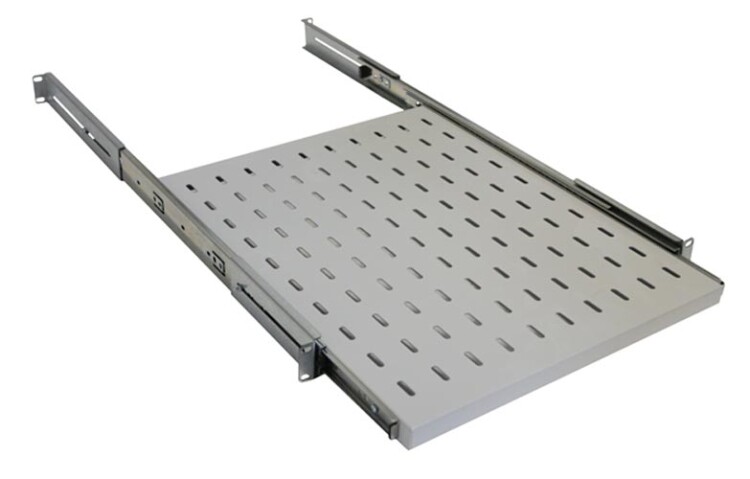 Предназначена для размещения оборудования, которое требует периодического обслуживания. Полка выполнена из металл 1,5 мм, имеет телескопические направляющие, обеспечивающие плавное выдвижение. Монтажные кронштейны фиксируют полку к вертикальным направляющим шкафов и стоек в четырех местах. Глубина монтажных кронштейнов регулируется, что позволяет устанавливать полку на необходимую глубину. Распределительная нагрузка на полку составляет 30 кг. Поставляется в разобранном виде.