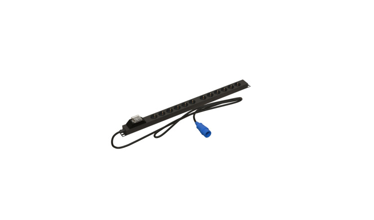 Hyperline SHE-12SH-B-2.5PVB Блок розеток, вертикальный, 12 розеток Schuko, автоматический выключатель, кабель питания 2.5м (3х4.0мм2) c вилкой IEC 60309 32A (2P+E), 250В, корпус алюминий, черный