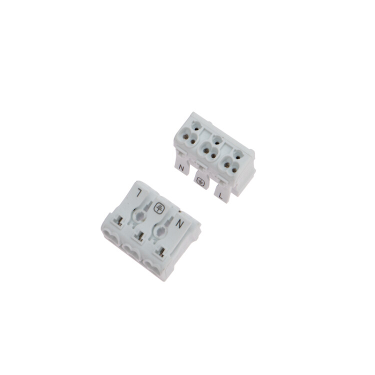 Пружинные трехполюсные клеммы REXANT предназначены для присоединения и ответвления одножильных и многожильных медных проводников в электрических цепях переменного тока напряжением до 450 В. Наличие маркировки («фаза», «ноль», «земля») на подвижной части зажима. Материал корпуса – самозатухающий ПВХ, материал контакта – электротехническая сталь. 1. Сечение многожильного провода -0,5х2,5мм² 2. Номинальный ток - 16А 3.Номинальное рабочее напряжение - 450В 4.Тип соединения - фиксатор/защелка 5. Количество полюсов - 3. 6. Наличие маркировки («фаза», «ноль», «земля») на подвижной части зажима. 7. Температурный диапазон в режиме эксплуатации: -60... +40 °C