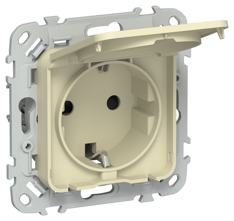FLITE Розетка с заземлением с защитными шторками и крышкой 16А IP44 РСшкр11-0-44-ФлН навахо IEK