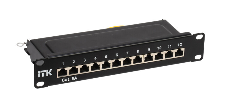 Патч-панель 1U, 10", 12хRJ45, STP, кат.6A, Dual IDC, ITK PP12-1UC6AS-D05-10