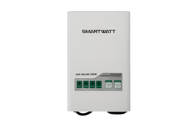 Стабилизатор напряжения SMARTWATT AVR ONLINE 550IW создан на основе инверторной технологии. Она обеспечивает защиту чувствительного электрооборудования: бытовой и отопительной техники, систем автоматики и оргтехники. Устройство гарантирует высокую точность стабилизации до 2%. Работает в широком диапазоне входного напряжения — от 90 до 310 В. Мгновенная реакция в 0 мс и форма выходного сигнала в виде чистой синусоиды исключают любые помехи и перебои, обеспечивая стабильную и безопасную работу подключенных приборов. Среди ключевых особенностей стабилизатора SMARTWATT AVR ONLINE 550IW — бесшумная работа и многоуровневая система защиты. Преимущества Высокая точность выходного напряжения Широкий диапазон напряжения сети Мгновенная реакция Плоский корпус Задержка на включение Микропроцессорное управление
