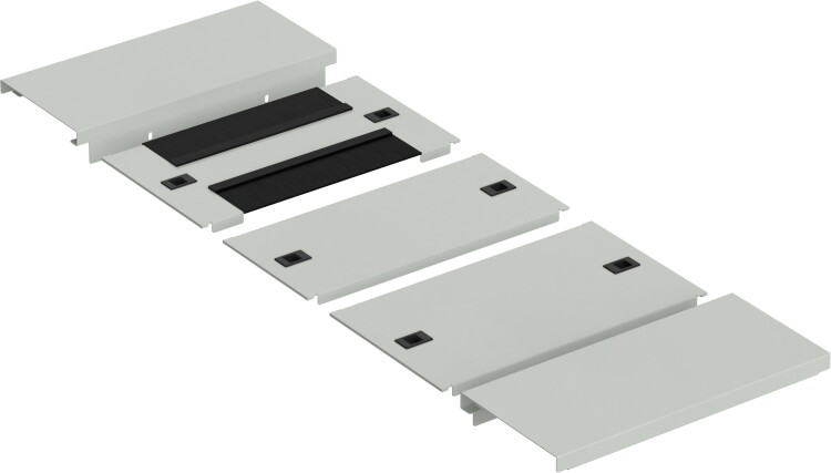 Используется для изолирования пространства в нижней части шкафа. Предотвращают попадание пыли во внутренне пространства шкафа а также повышают эффективность систем принудительного охлаждения. Элементы панели оснащены подпружиненными замками, что обеспечивает их простой и удобный монтаж без использования инструментов. Один из модулей панели оснащен щеточными вводами с суммарным окном просвета 480 см², при необходимости увеличения емкости кабельного ввода имеется возможность замены любого глухого модуля панели на модуль с щеточным вводом. Монтаж панели основания возможем уже после ввода кабеля в шкаф.