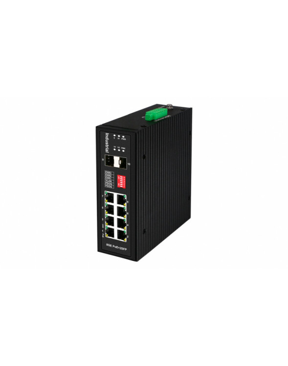 Промышленный HiPoE коммутатор Gigabit Ethernet на 8GE PoE + 2 GE SFP порта. Порты: 1 x GE (10/100/1000Base-T) с PoE BT (до 90W) + 7 x GE (10/100/1000Base-T) с PoE (до 30W) + 2 x GE SFP (1000Base-X). Соответствует стандартам PoE IEEE 802.3af/at/bt. Встроенная грозозащита 6кВ, электростатическая защита 8кВ. Питание: 2 x входа DC37-57V(315W). БП в комплект НЕ входит. Монтаж на DIN-рейку или на стену (крепление в комплекте). Размеры (ШхВхГ): 50х162х130мм. Вес: 1,1кг. Рабочая температура: -40…+80°С.