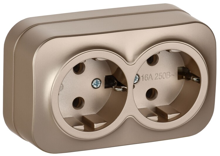 GLORY Розетка 2-местная для открытой установки с заземлением без защитных шторок 16А РС22-3-ХШм шамп