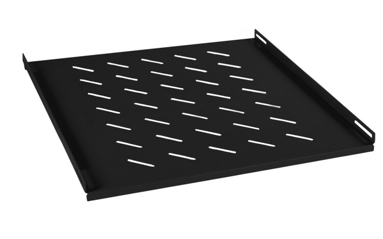 Стационарная полка четырехточечного крепления предназначена для установки в напольные шкафы Cabeus глубиной 800мм. Используется для размещения технологического оборудования, не имеющего стандартного 19” крепления. Полка имеет перфорацию, позволяющую охлаждать технологическое оборудование. Максимально разрешенная нагрузка – 45 кг. Покрытие – порошковая ударопрочная краска, черная (RAL9004). Толщина стали составляет 1,3 мм. Установка стационарной полки производится путем крепления на боковые поверхности 19” направляющих с помощью стандартного крепежа – квадратных гаек, винтов М6 и пластиковых шайб.