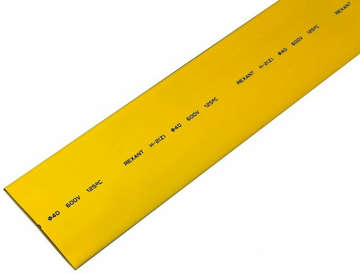 Термоусаживаемая трубка 40,0/20,0мм, желтая, упаковка 10шт. по 1м, REXANT 24-0002
