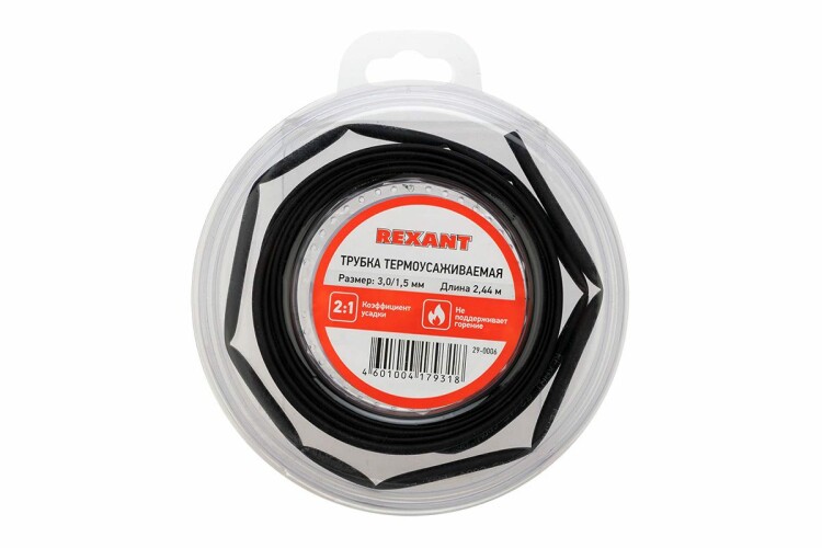 Трубка термоусаживаемая 3,0/1,5мм черная, ролик 2,44м, REXANT 29-0006