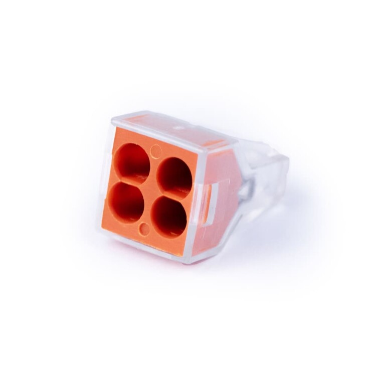 Соединительная изолированная клемма предназначена для соединения одножильных медных проводников. Фиксация проводников в клемме осуществляется при помощи плоско-пружинного зажима. Клеммы обеспечивают простой и быстрый монтаж. Основные характеристики: Количество зажимов - 4, Наличие контактной пасты - нет, Проводник - одножильный, Материал проводника - медь, Сечение проводника - до 4,0 мм², Номинальный ток - 24 А, Максимальное напряжение - 400 В, Материал контактов - луженая медь, Материал корпуса - полиамид, Температура эксплуатации -30°C...85°C, Количество в упаковке - 10 шт.