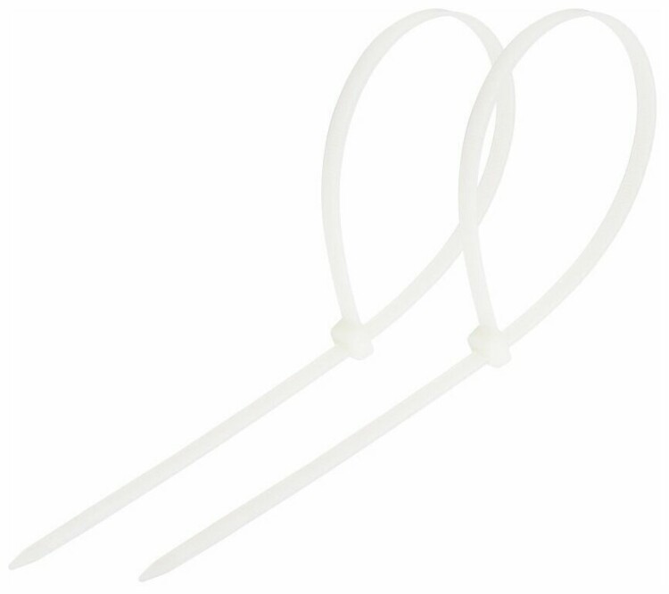 Хомут нейлоновый (кабельная стяжка) 250х3,6 мм белый REXANT предназначен для крепления или обвязки в жгут кабелей и проводов, крепления гибких гофротруб, а также других предметов к несущей поверхности или для соединения между собой. Такая стяжка используется при проведении электромонтажных работ, при монтаже структурированных кабельных систем, для бытовых нужд, а также в других отраслях народного хозяйства. Представляет собой гибкую полоску из нейлона высокой прочности (полиамид-6,6) с замком на конце. Полиамид-6,6 — кристаллизующийся конструкционный материал, имеющий высокую твердость и механическую прочность, отличающийся высокими электроизоляционными свойствами. Простой и удобный монтаж осуществляется вручную следующим образом: большим пальцем левой руки прижать замок к пучку, а правой рукой затягивайте петлю, либо с помощью специального инструмента REXANT арт.12-4521 или 12-4541 (вставить конец затяжки в замок и затянуть до полной фиксации пучка, после чего отрезать выступающую часть бандажа).