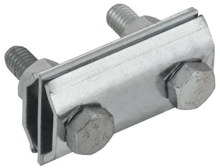 Зажим соединительный сквозной двойной пруток-пруток предназначен для соединения круглых проводников. Способен зажимать проводники как соосно, так и параллельно друг другу. Состоит из трёх пластин и зажимных болтов с гайками. Двухрядная конструкция соединителя позволяет зажимать до 4-х проводников в соединении. Материал корпуса - сталь с гальваническим цинковым покрытием.