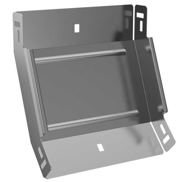 Поворот вертикальный внутренний на 45° предназначен для организации поворота кабельной трассы в вертикальной плоскости. Стыковка аксессуара с лотком осуществляется за счёт телескопического соединителя. Подходит для всех типов листовых лотков серии ESCA. Крышка на аксессуар заказывается отдельно. Аксессуар изготовлен из стали оцинкованной методом Сендзимира (защитный слой цинка не менее 5-10 мкм).