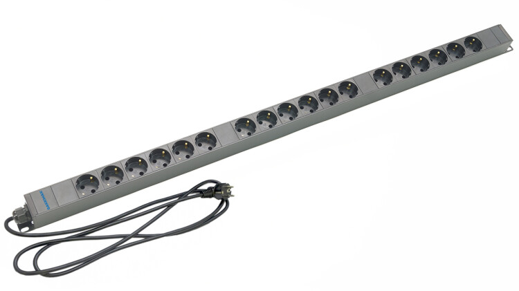 Блок розеток вертик. 18 гнезд (Schuko), 16A, черный, кабель 2,5м, DANNMAN 7000100