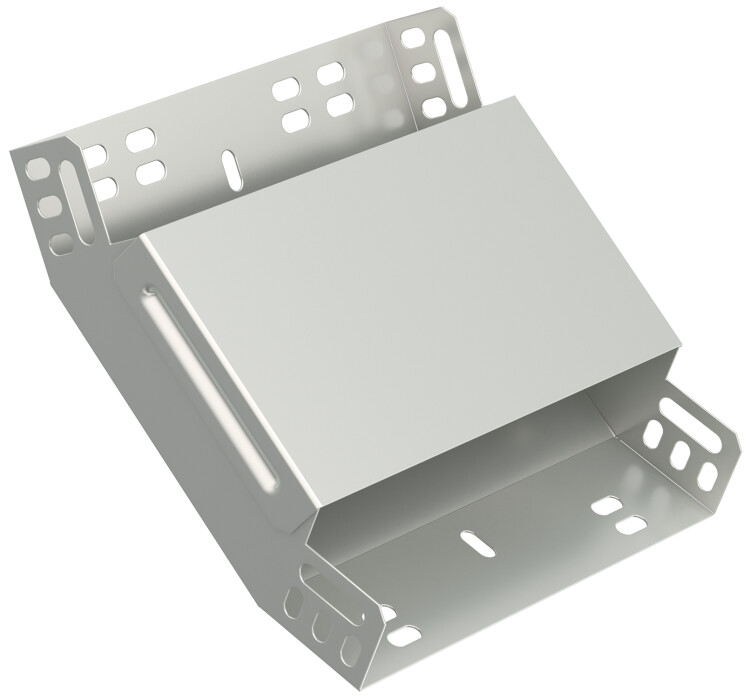Поворот на 45° вертикальный внутренний служит для организации вертикального поворота кабельной трассы на 45°. Данный аксессуар поставляется в комплекте с крышкой. Все аксессуары для металлических лотков изготовлены из стали горячего цинкования методом Сендзимира (защитный слой цинка 10-20 мкм).