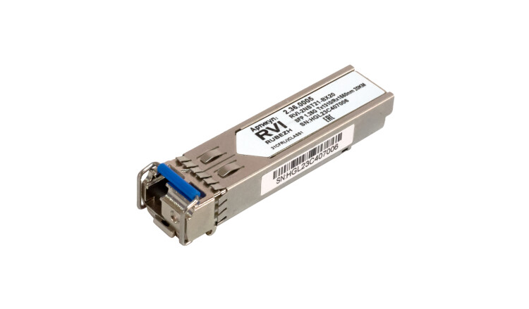 Оптический трансивер RVi-2NST21-BX20-I (далее – SFP-модуль) c Simplex LC разъёмом в промышленном исполнении предназначен для использования в портах SFP (Small Form-Factor Pluggable) сетевых устройств (коммутаторов, маршрутизаторов т.д.). SFP-модуль использует двунаправленную связь по одному оптическому волокну при помощи технологии WDM, которая осуществляет разделение сигналов с разной длиной волны. SFP-модуль поддерживает скорость передачи данных 1.25 Гбит/с и имеет возможность горячей замены, что позволяет установить его в сетевое устройство без необходимости его отключения и перезагрузки. Металлический корпус обеспечивает защиту от внешних электромагнитных помех и повышает стабильность работы в различных условиях эксплуатации.