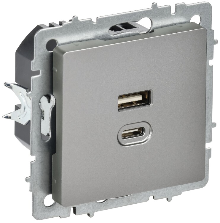 BRITE Розетка USB A+C 45Вт высокоскоростная зарядка РЮ11-2-БрС сталь IEK