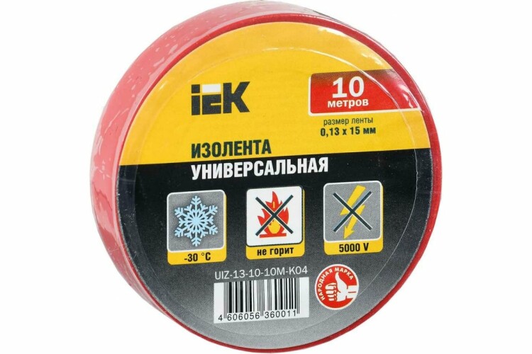 Изолента 0,13х15мм, 10м, красная, IEK UIZ-13-10-10M-K04