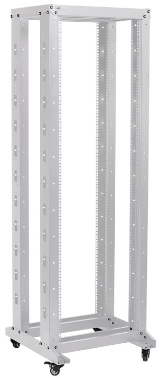 Конструкция 19" стоек на роликах серии LINEA F бывает двух видов: однорамная и двухрамная, собираются за счёт вертикальной установки металлической рамы на устойчивое основание, имеющее ролики для простоты перемещения и транспортировки стоек с уже установленным оборудованием. У рам с торцевой стороны по всей высоте имеются окна для закладки и фиксации пучков кабеля. За счёт своих конструктивных особенностей открытые стойки на роликах обладают такими преимуществами в сравнении со шкафами, как удобство монтажа/демонтажа оборудования, простота администрирования, лучшая вентиляция и охлаждение установленного оборудования, мобильность, более легкая и быстрая сборка конструкции.
