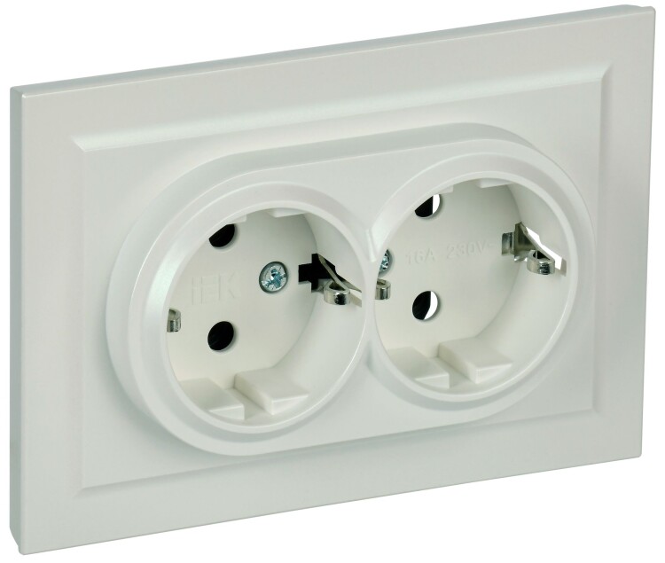 BRITE Розетка 2-местная с заземлением с защитными шторками 16А в сборе РСш12-3-БрЖ жемчуг IEK